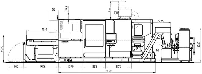 Automatische Zuführung von Stangenmaterial bis ø102 mm und einer Länge bis 1200 (1500) mm