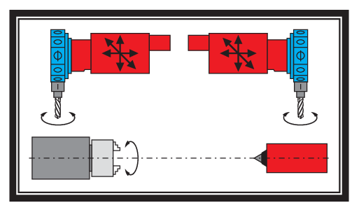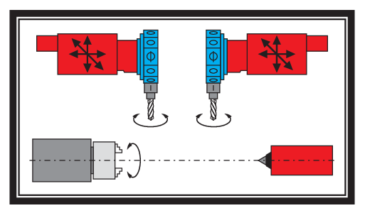 Mit Esprit erhalten Sie die Möglichkeit, gleichzeitig Vorder- und/oder Rückseite des Werkstücks mit einem, zwei oder mehr Dreh- und Fräswerkzeugen zu bearbeiten. Wenn Sie ESPRIT einsetzen, um das Potenzial Ihrer Produktionsdrehzentren optimal zu nutzen, werden Ihre Zykluszeiten drastisch verkürzt und Teile werden mit einer einzigen Aufspannung vollständig bearbeitet. Die Vielfalt an Bearbeitungszyklen in ESPRIT umfasst alle Zyklen für das Teilehandling - vom ersten Stangenvorschub und dem Einspannen des Rohteils über Lünetten bis hin zum Teilabstechen und Auffangen.