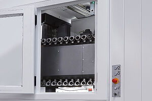 Sowohl das Vermessen des Werkzeugs zur Reduzierung der Einrichtezeit beim Werkzeugwechsel als auch das Vermessen des Werkstückes, um Maße zu kontrollieren bzw. um Nullpunkte zu ermitteln, ist innerhalb der Maschine mittels Funkmesstaster bzw. Laserbrücke optional möglich.