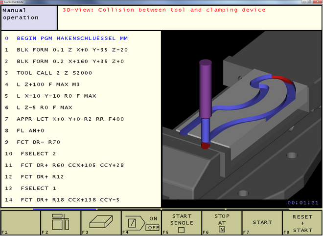 In the run-up to the machining process collisions and programming mistakes can be avoided and corrected by using the dry run.