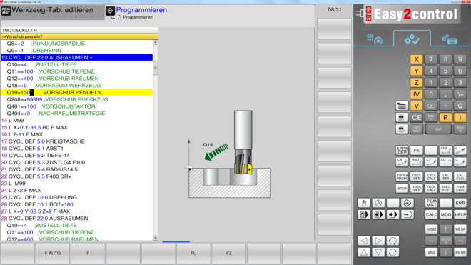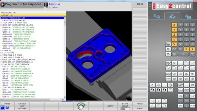 In the run-up to the machining process collisions and programming mistakes can be avoided and corrected by using the dry run.