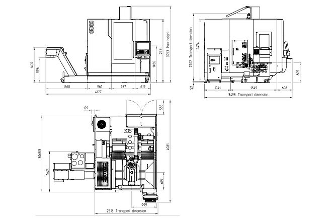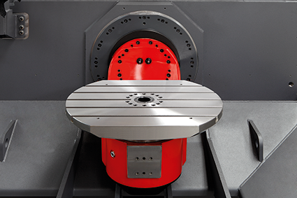 La tavola roto-basculante ha un'ampia superficie di bloccaggio pari a 750 x 600 mm e può sostenere carico per un peso massimo di 300 kg. È possibile lavorare facilmente pezzi di dimensioni fino a 530 x 530 x 417 mm. La forma particolare della tavola permette al naso mandrino di avvicinarsi al centro della stessa.