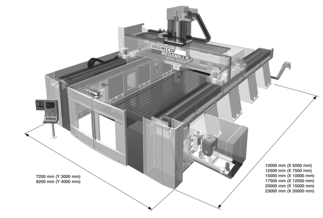 | Corsa in X/Y/Z | X: da 7500 e oltre / Y: 4000-5000-6000-7000 mm / Z:1500-2000-2500 mm |