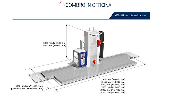 | Corsa in X/Y/Z | X: 6000 mm e oltre / Y: 1600 mm / Z: 3500-4000 mm |