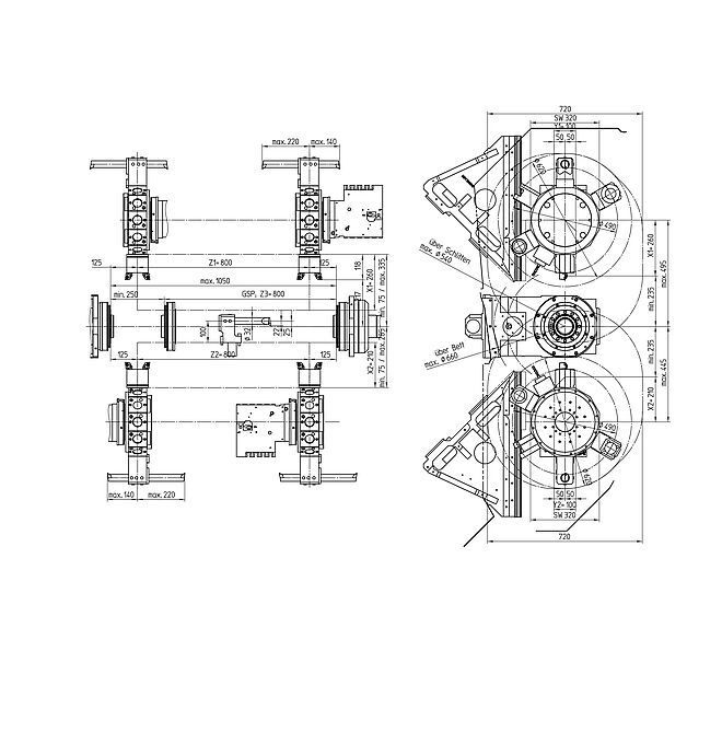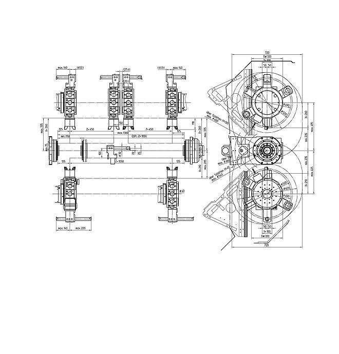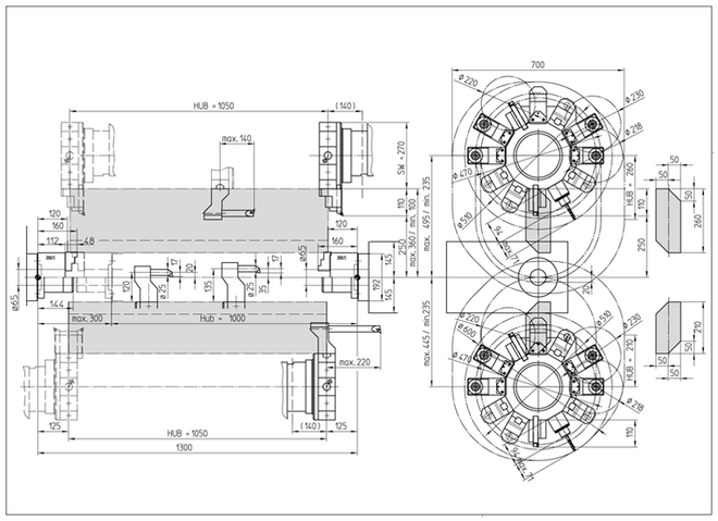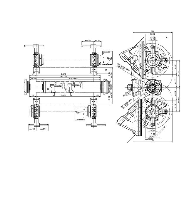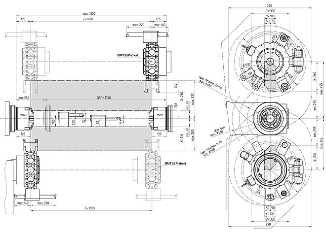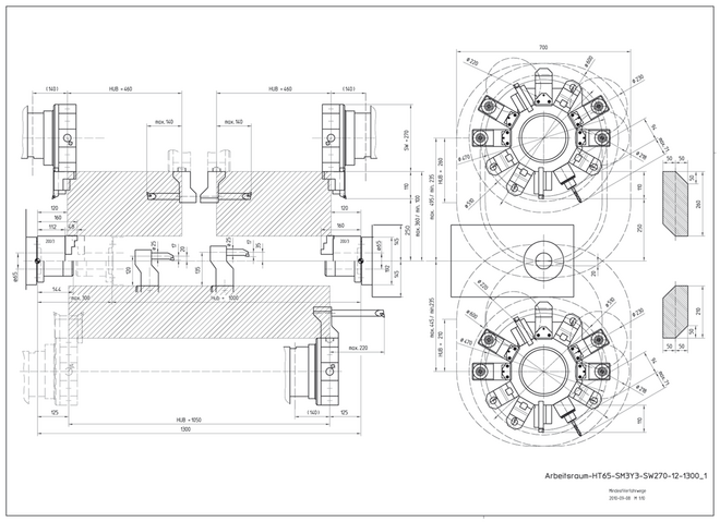 | Corsa in X/Y/Z | z.B. HT 65 DT-1000: X1/X2:260/210, Z1/Z2/Z3:800/800/800, Y1/Y2:100(+/-50) mm |